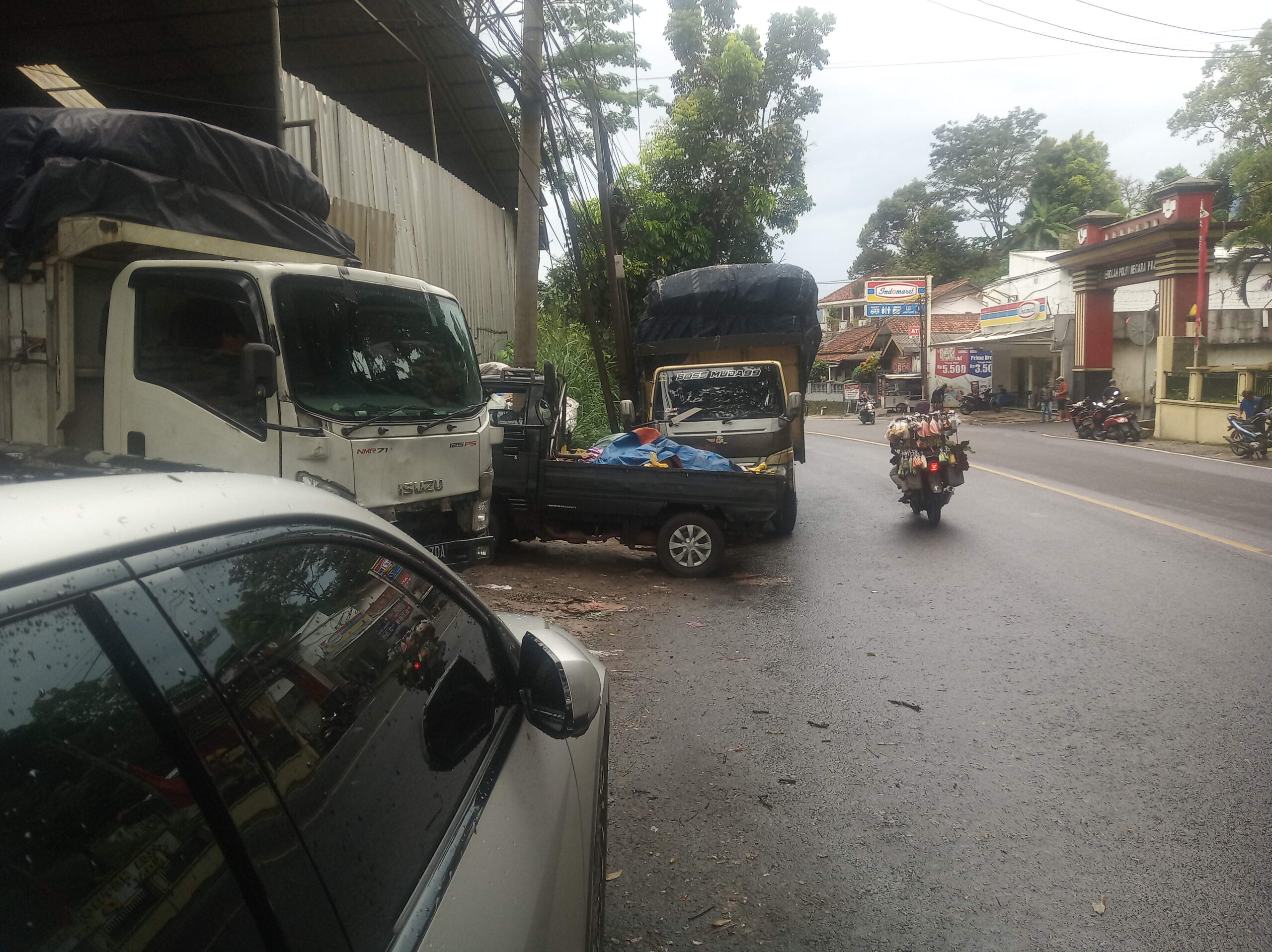 Akibat tidak tersedianya area parkir khusus, sejumlah truk dan kendaraan pengangkut kardus terpaksa parkir di badan jalan hingga memakan sebagian ruas jalan. Kondisi ini semakin berbahaya karena lokasi gudang berada tepat di tikungan, yang memiliki jarak pandang terbatas bagi pengendara yang melintas.